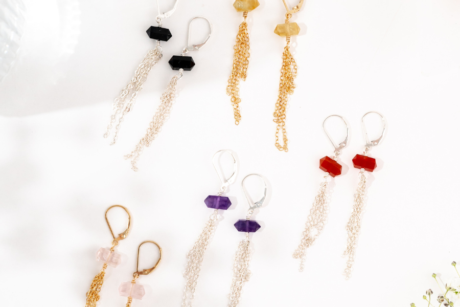 Crystal Quartz Double Terminated Crystal Point Tassel Earrings
