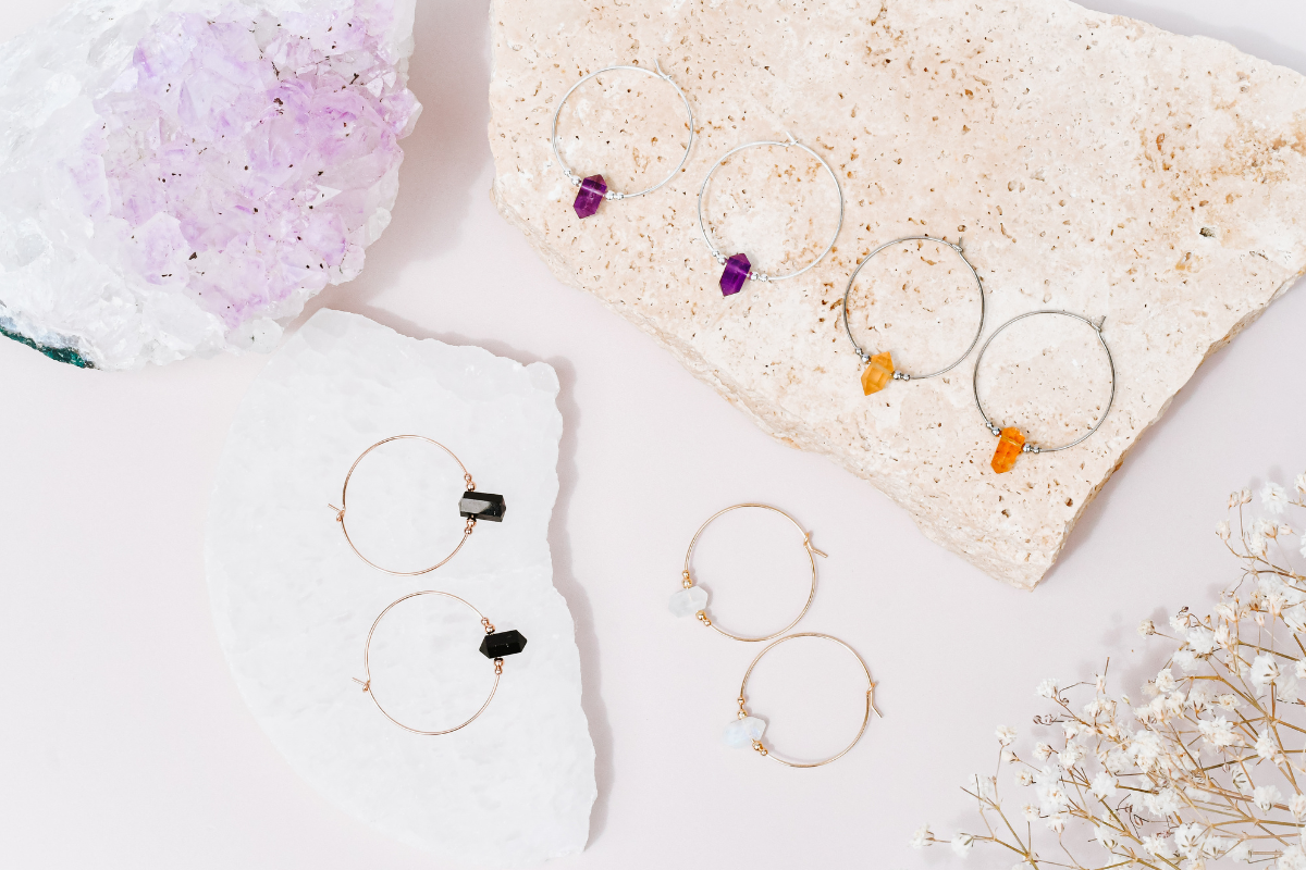 Handmade from genuine gemstones, these large crystal hoops are the ultimate earrings for spiritual ladies who like to make a statement. They feature a double terminated crystal on each hoop which is pointed at both ends to allow the metaphysical energies to flow in both directions. Feel connected to mother nature and all her glory everywhere you turn.