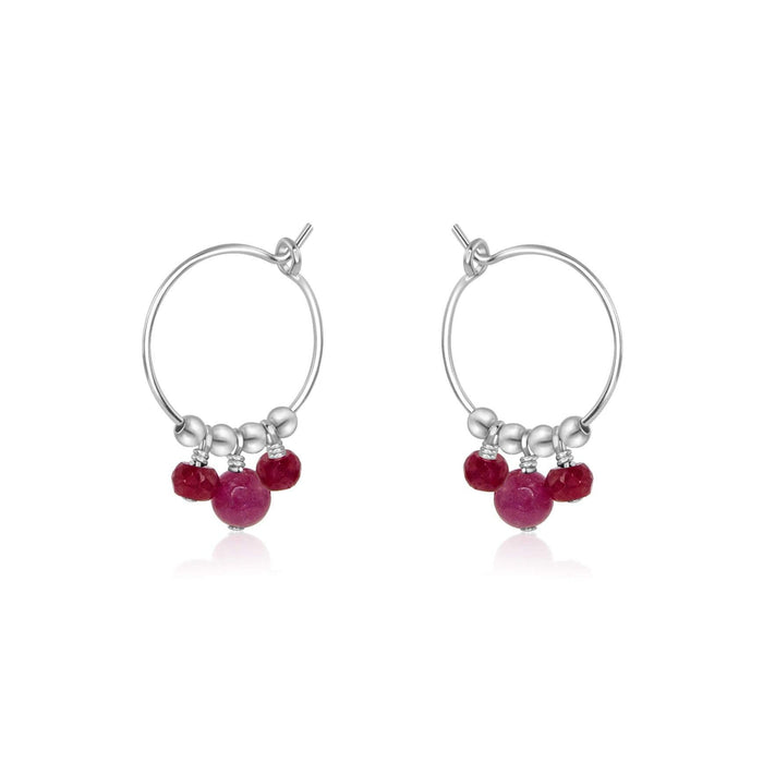 Red Ruby Gemstone Bead Drop Hoop Earrings