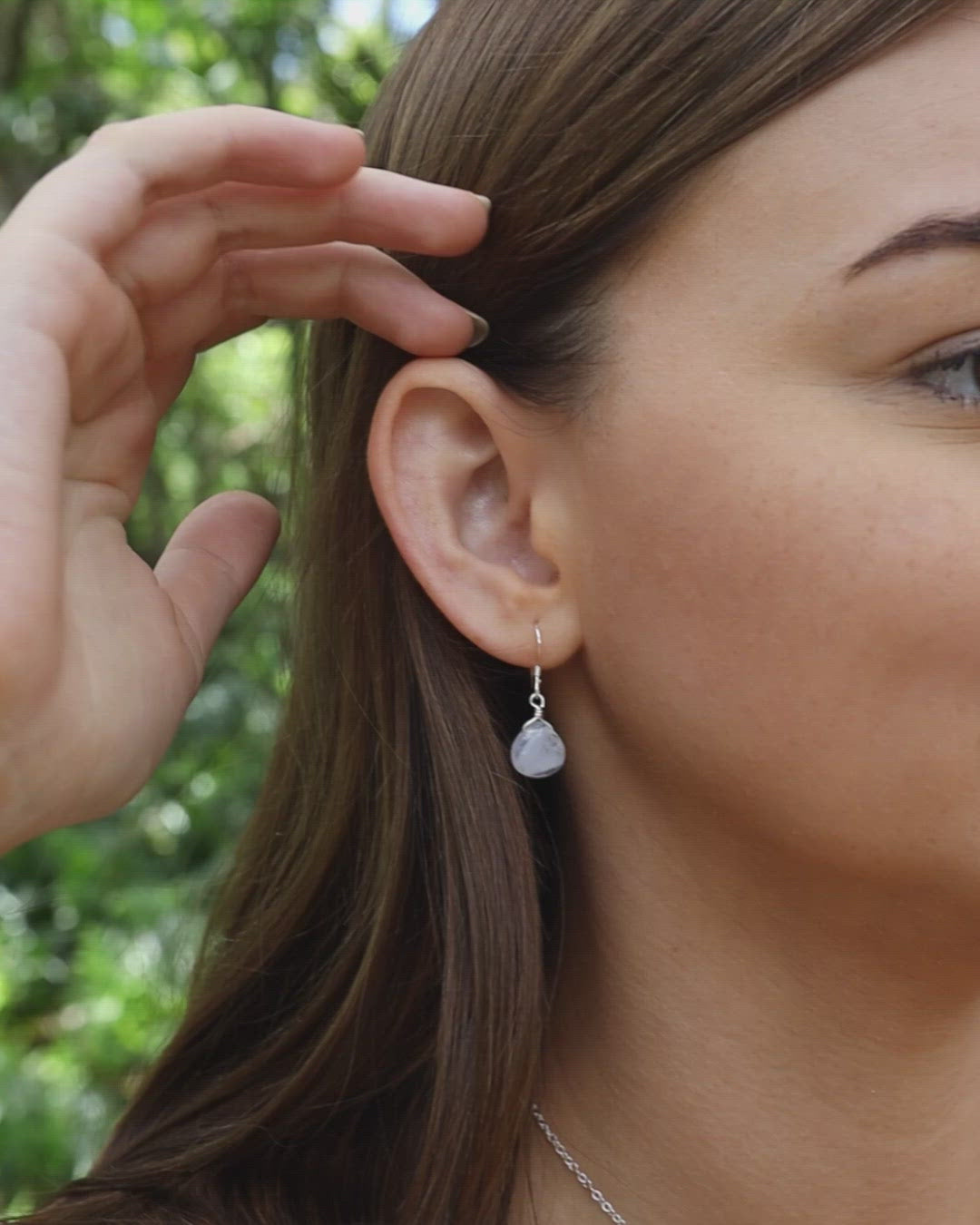 Blue Lace Agate Gemstone Teardrop Dangle Earrings - Blue Lace Agate Gemstone Teardrop Dangle Earrings - 14k Gold Fill - Luna Tide Handmade Crystal Jewellery