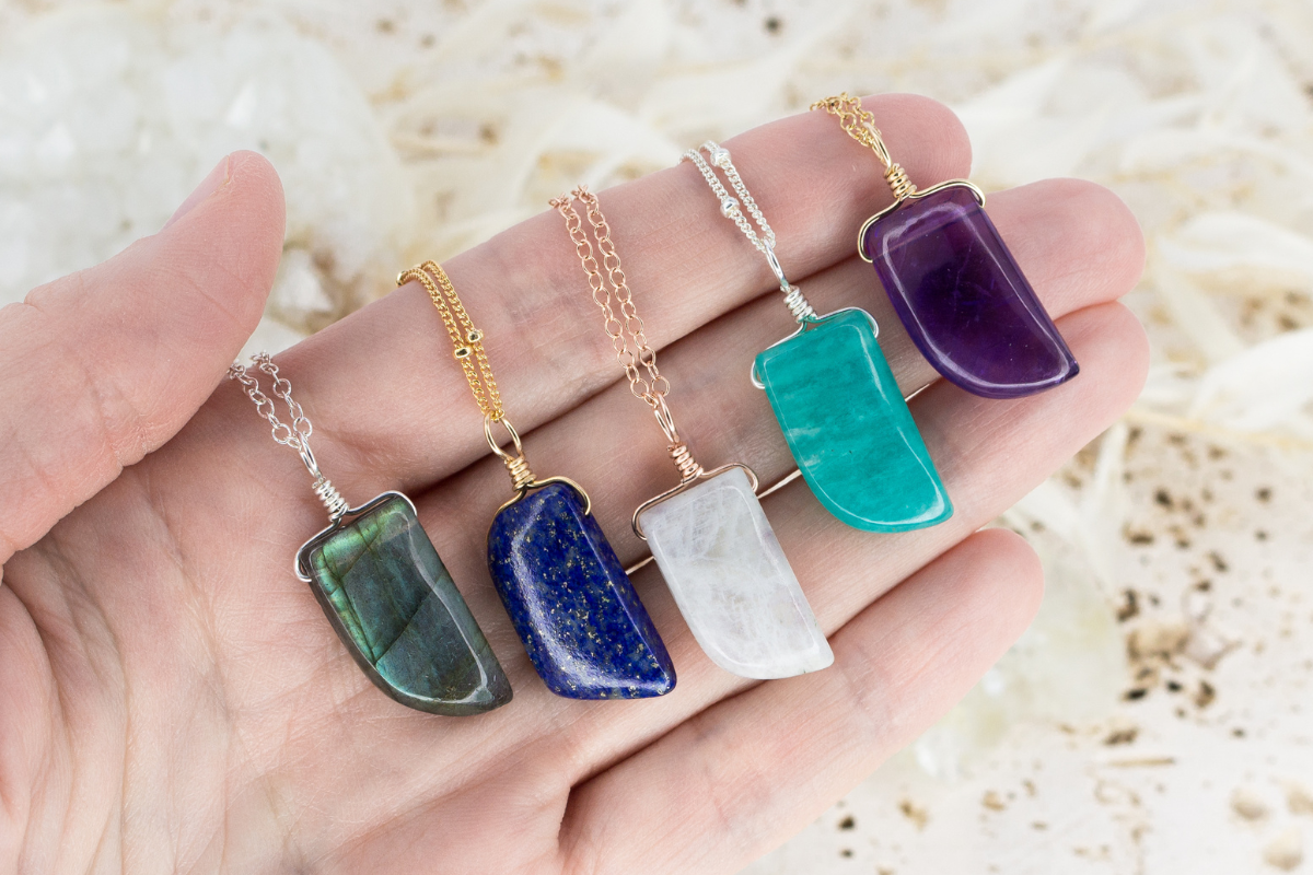 Small Smooth Blue Lace Agate Gentle Point Crystal Pendant Necklace Luna Tide Skip to content