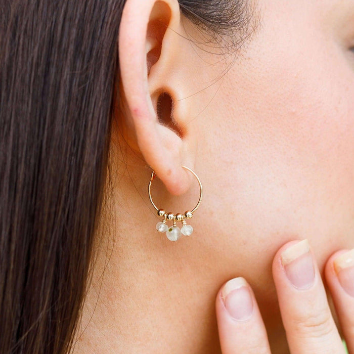 Tiny Prehnite Gemstone Bead Hoop Earrings