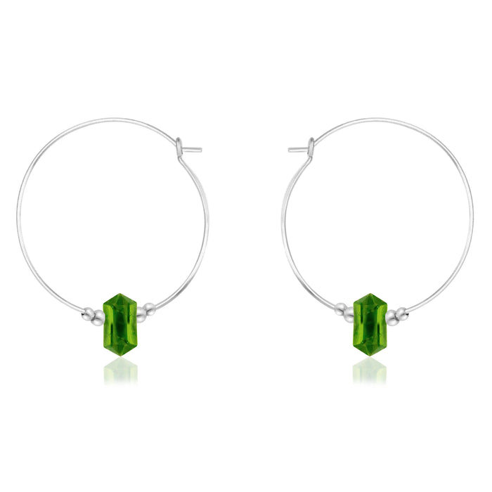 Large Hoop Peridot Double Terminated Crystal Point Earrings