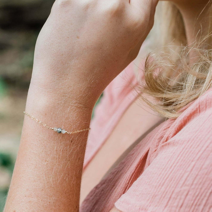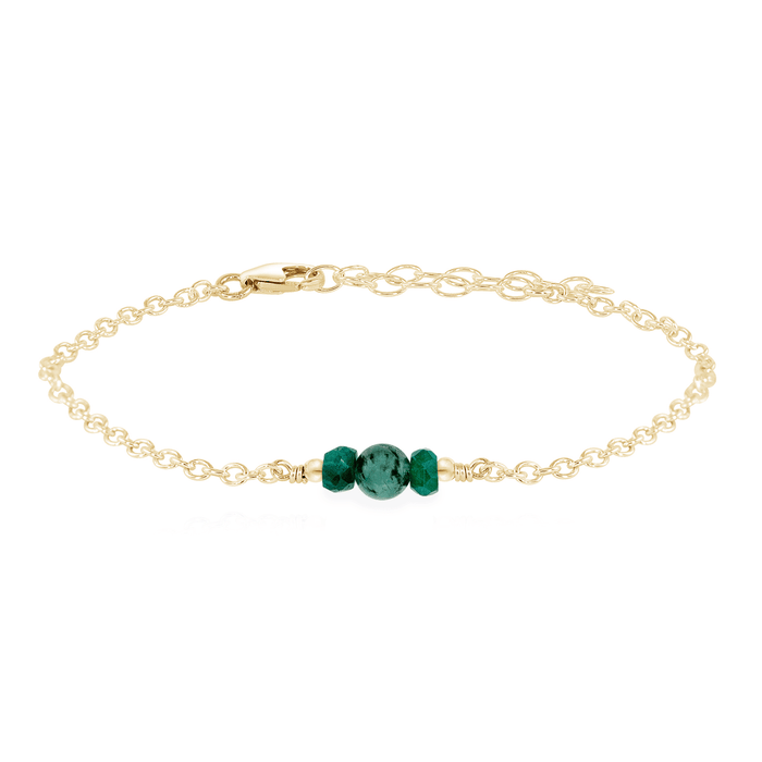 Sparkling Green Emerald Gemstone Faceted Bead Bar Bracelet