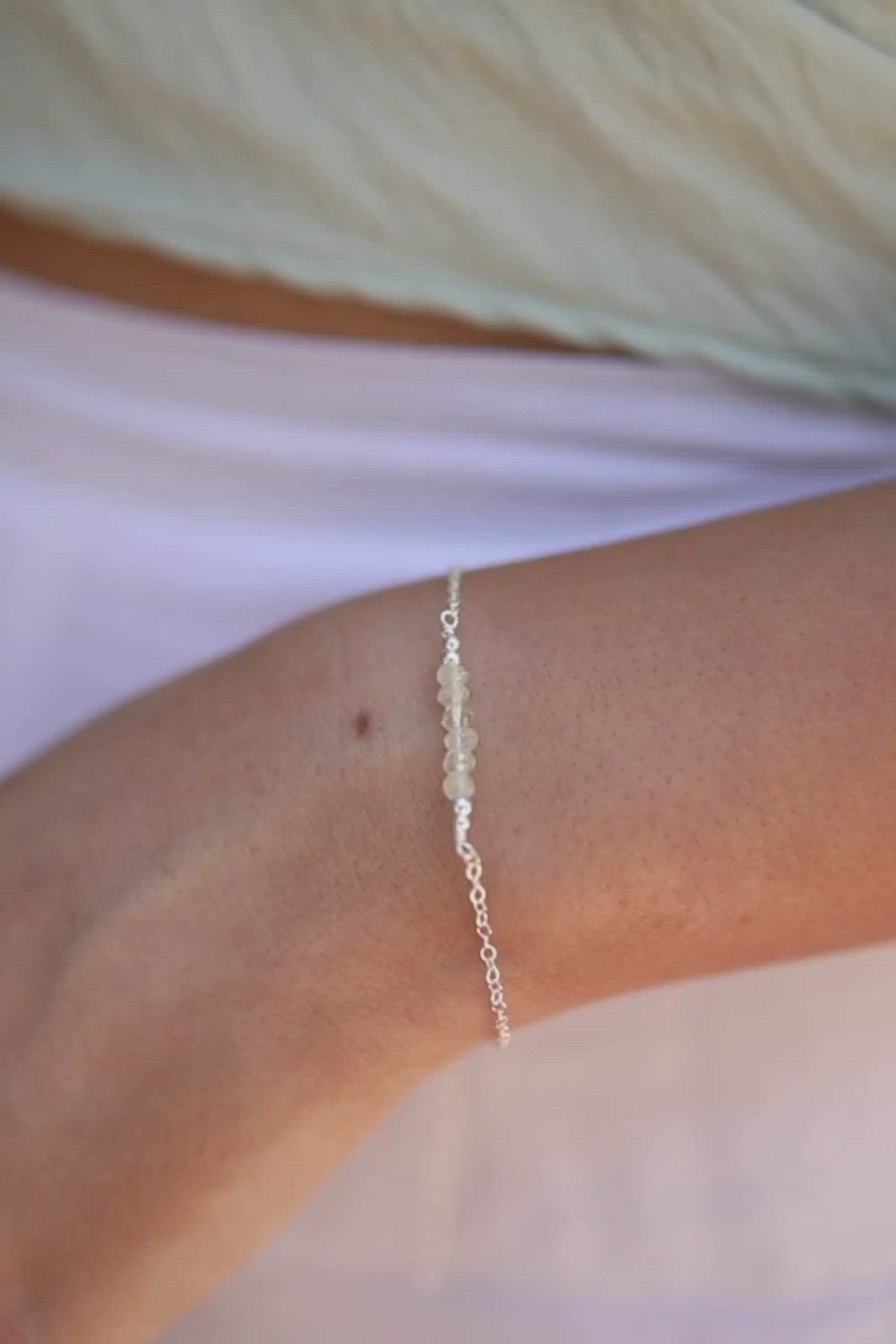 Sparkling Green Prehnite Gemstone Faceted Bead Bar Bracelet - Sparkling Green Prehnite Gemstone Faceted Bead Bar Bracelet - Sterling Silver - Luna Tide Handmade Crystal Jewellery