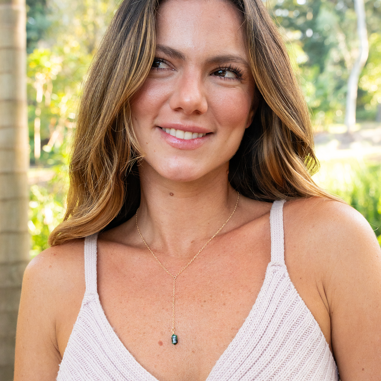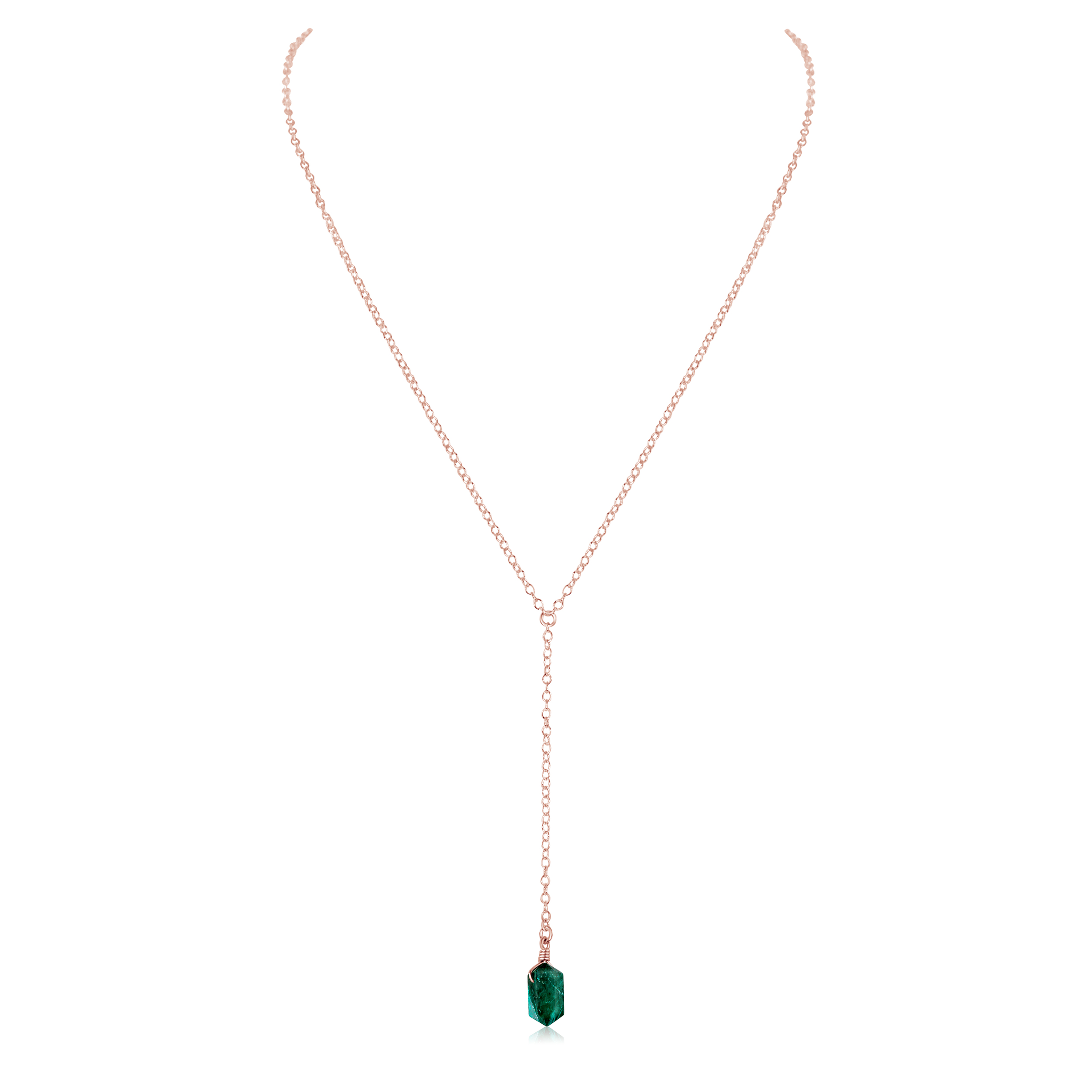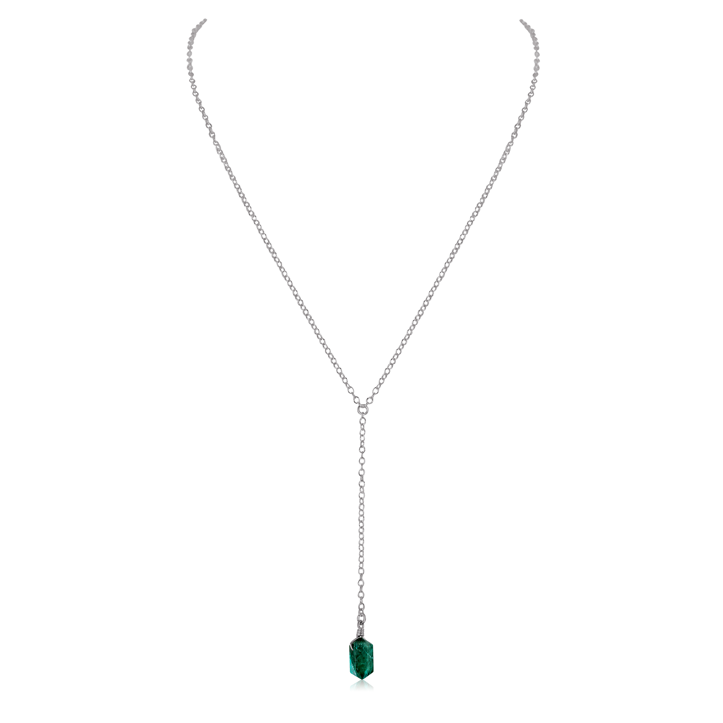 Emerald Double Terminated Mini Crystal Point Lariat Necklace