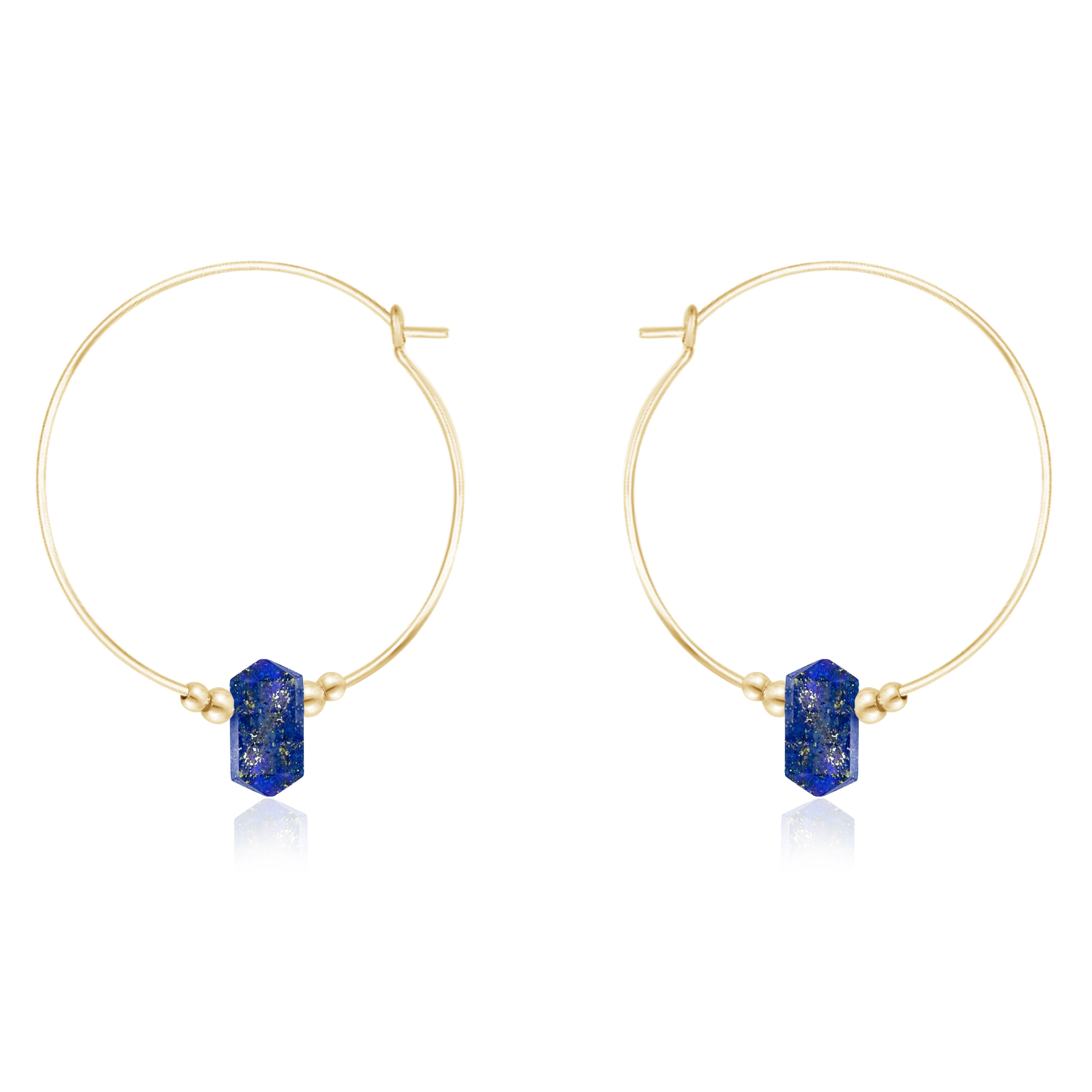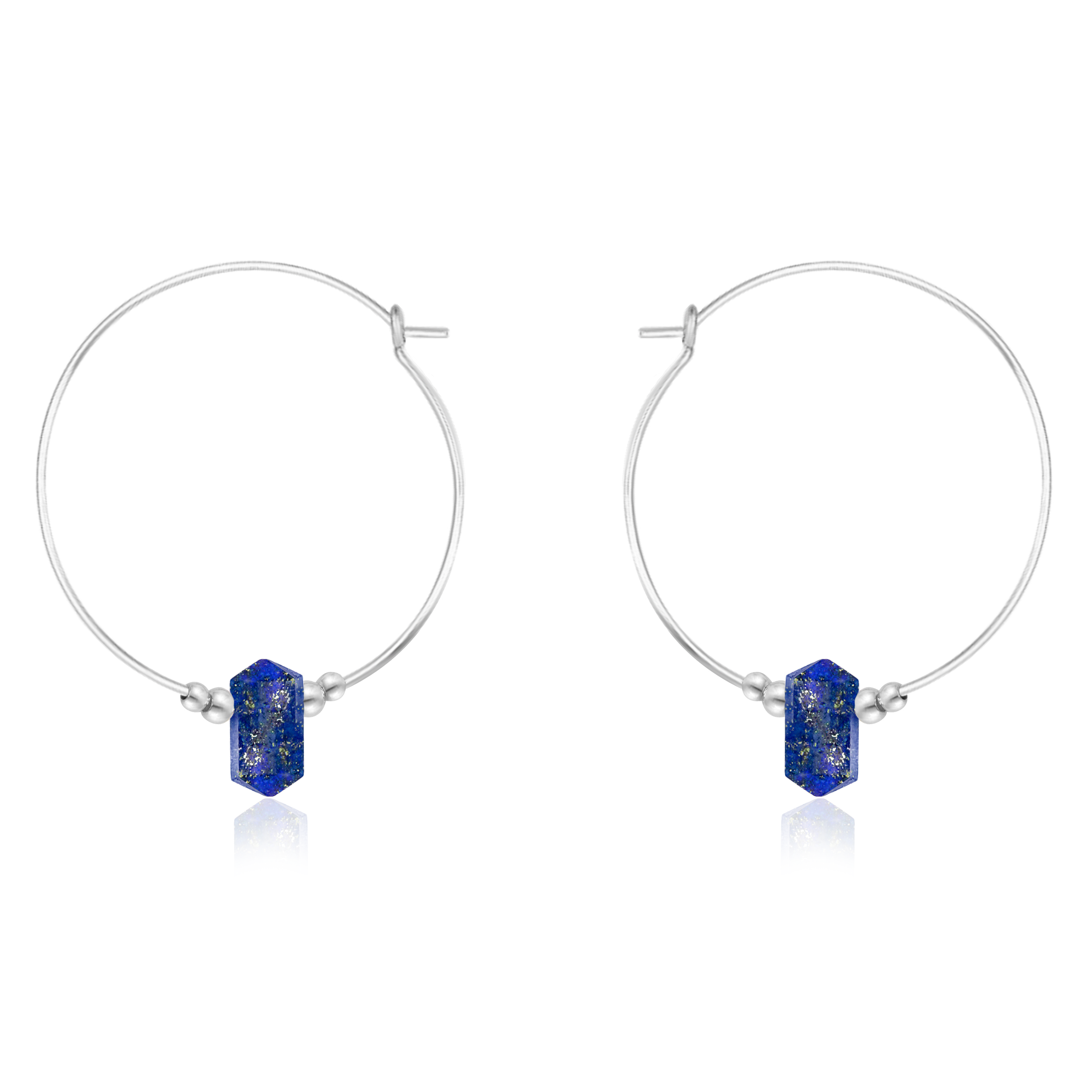 Large Hoop Lapis Lazuli Double Terminated Crystal Point Earrings