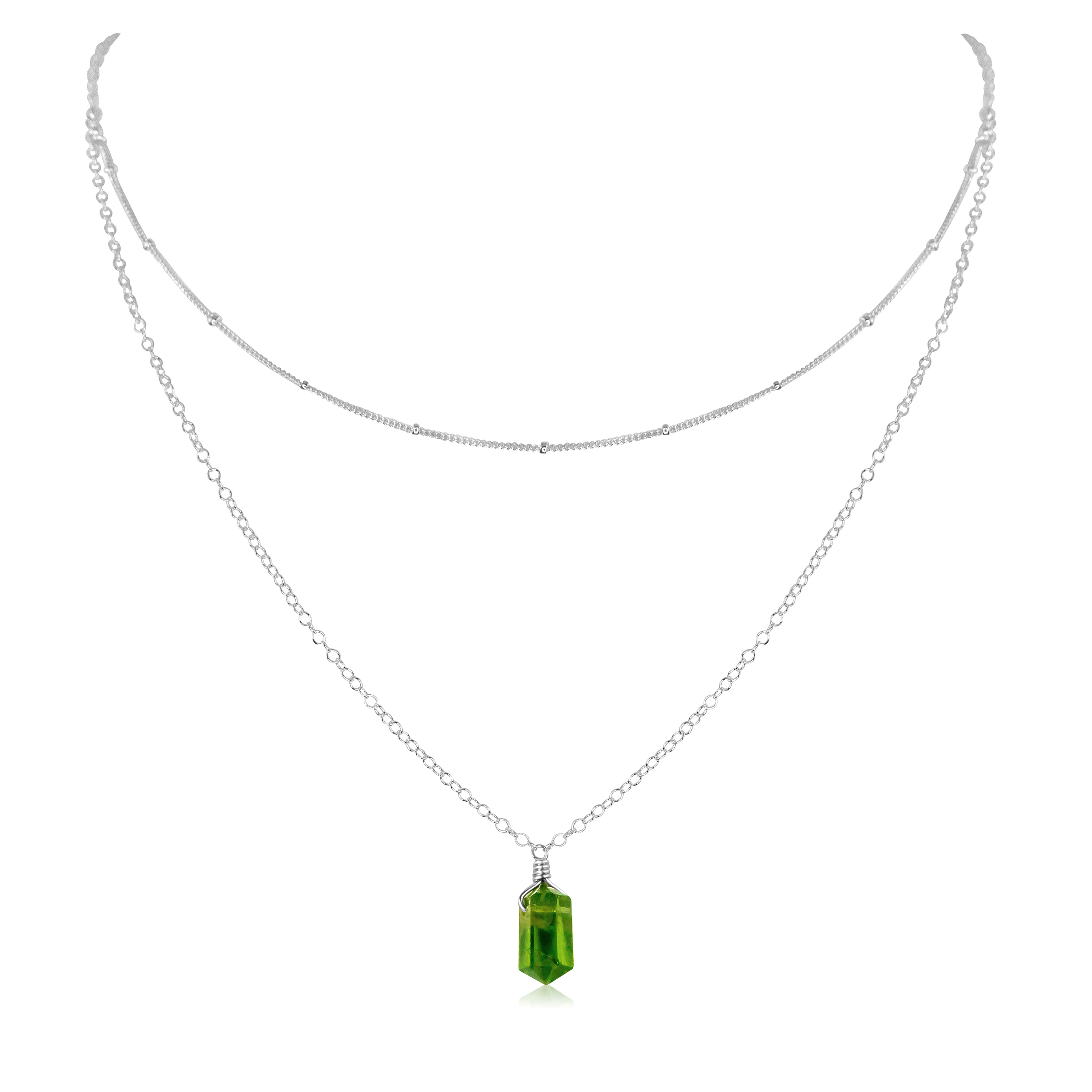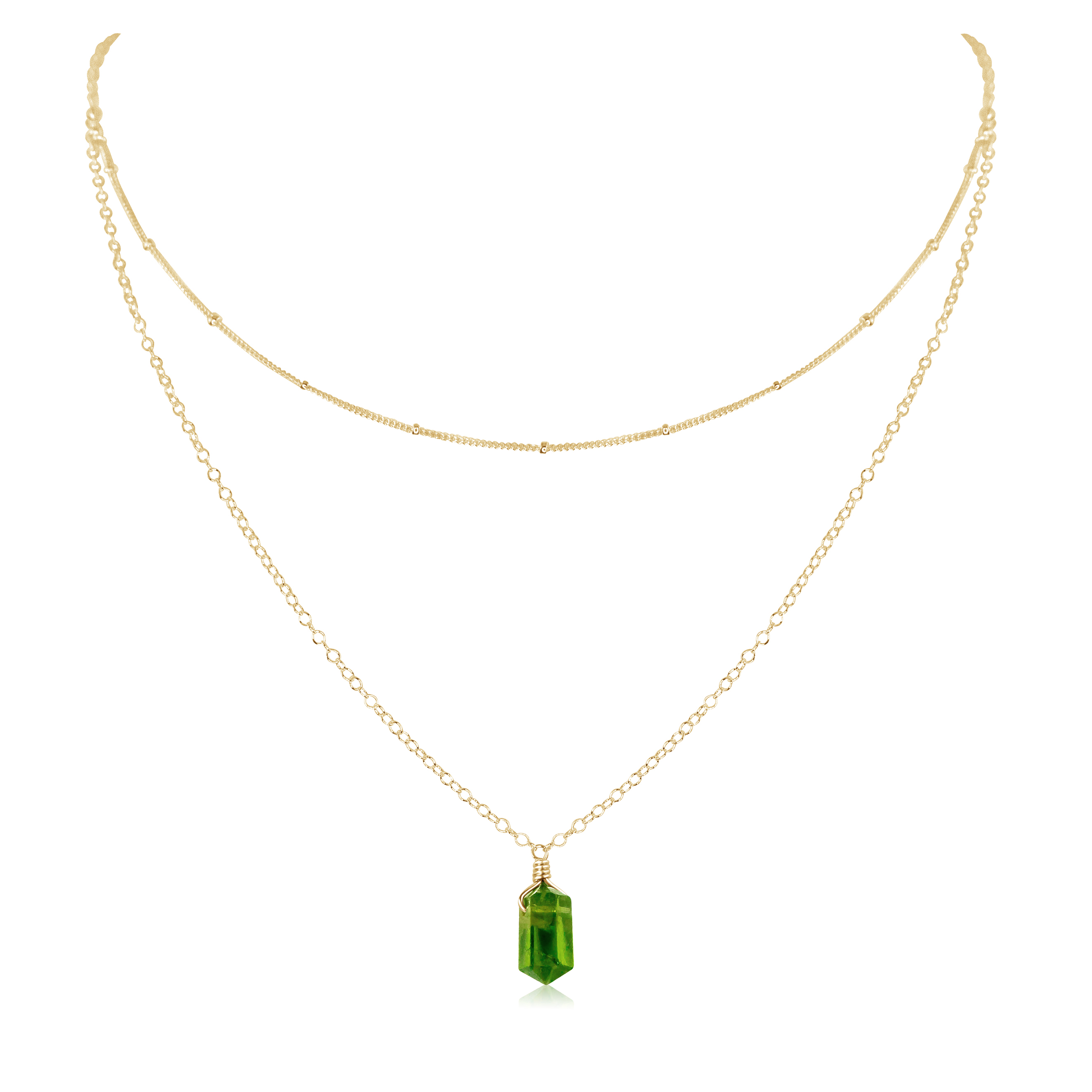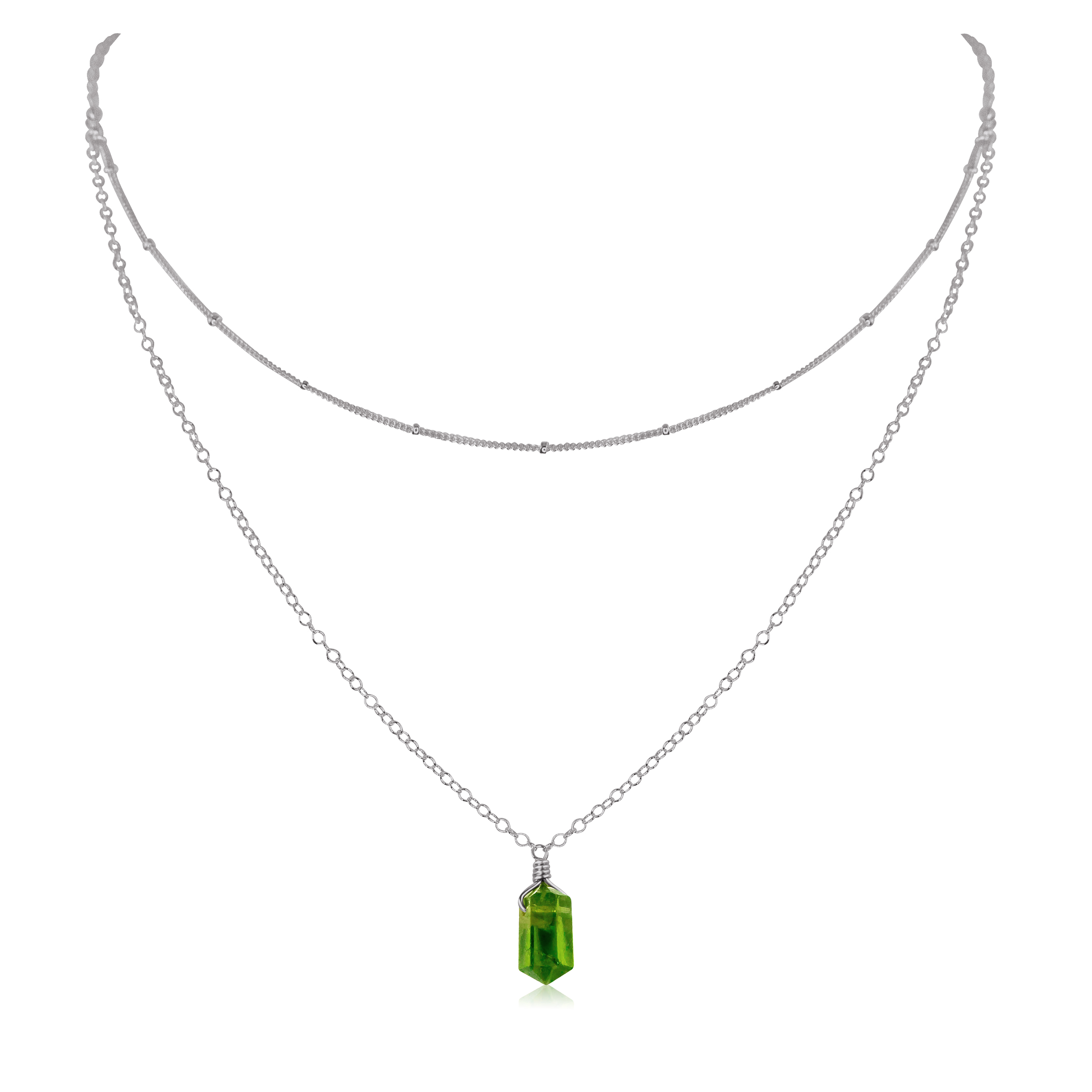 Peridot Double Terminated Crystal Chain Layered Choker Necklace
